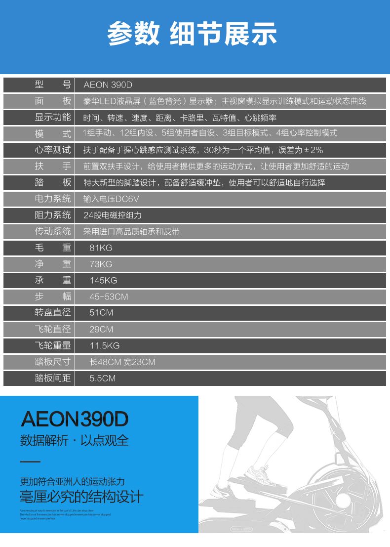 美国AEON椭圆机 正伦390D家用磁控静音椭圆仪